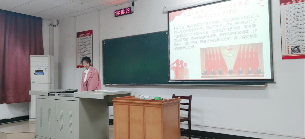 2020级本科工业自动化1班团支部书记黄晟琪带领认真学习百年来共青团坚定不移听党话、跟党走的奋斗历程,深入学习共青团和青年工作的宝贵经验。